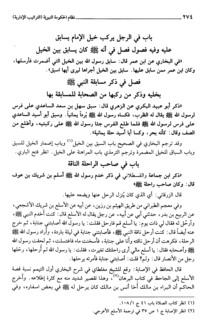 «في البخاري عن ابن عمر قال: سابق رسول الله بين الخيل التي أضمرت فأرسلها، وكان ابن عمر ممن سابق عليها. سابق بين الخيل أجراها ليرى أيها اسبق» .