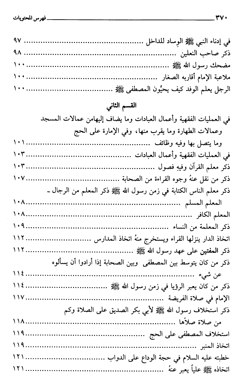 القسم الثاني في العمليات الفقهية وأعمال العبادات وما يضاف إليها من عمالات المسجد وعمالات الطهارة وما يقرب منها، وفي الإمارة على الحج وما يتصل بها وفيه وظائف 101