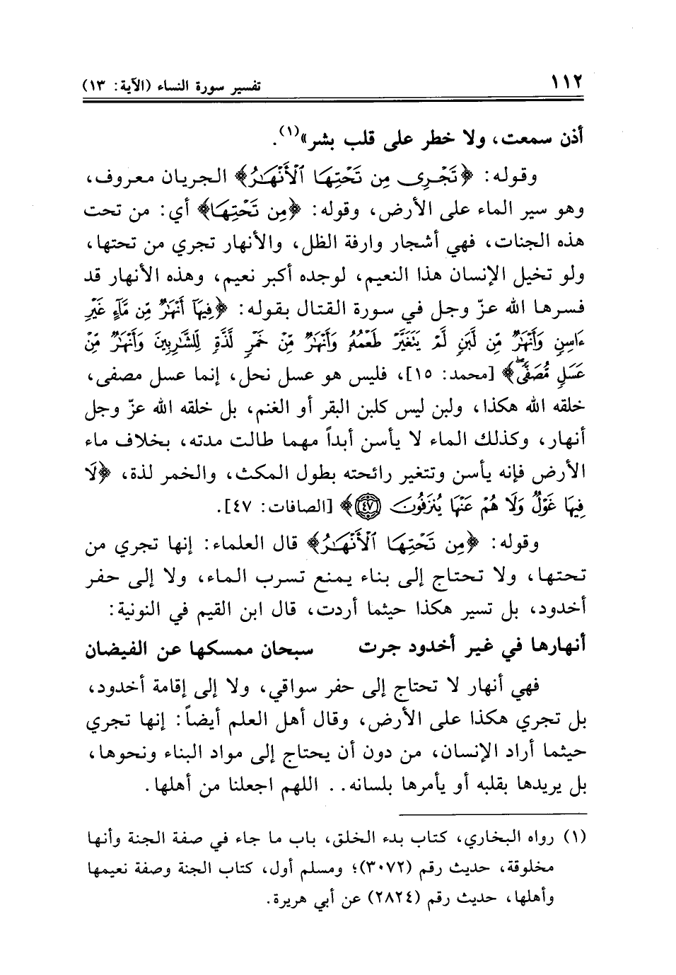 (¬١) رواه البخاري، كتاب بدء الخلق، باب ما جاء في صفة الجنة وأنها مخلوقة، حديث رقم (٣٠٧٢)؛ ومسلم أول، كتاب الجنة وصفة نعيمها وأهلها، حديث رقم (٢٨٢٤) عن أبي هريرة.