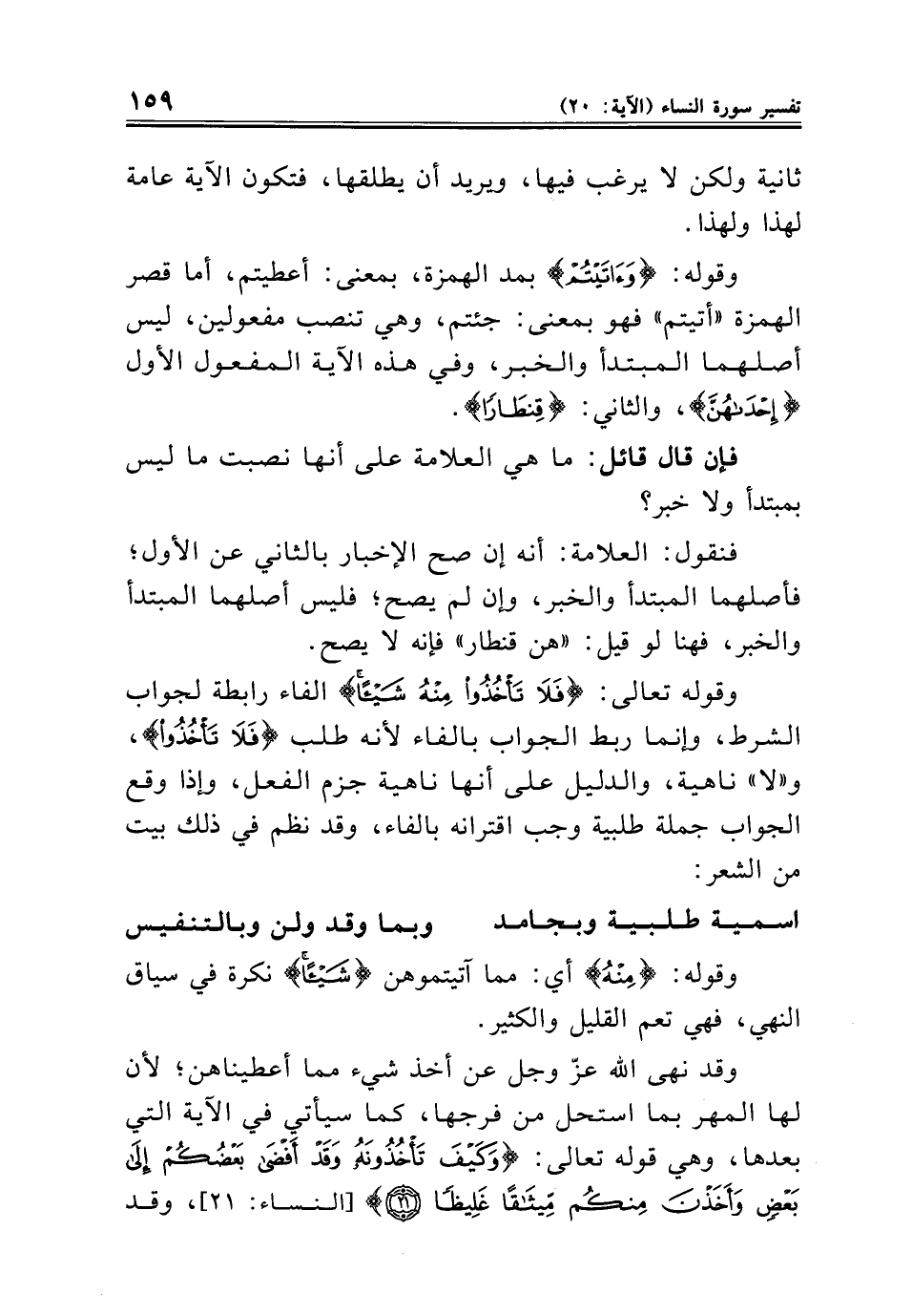 وقد نهى الله عزّ وجل عن أخذ شيء مما أعطيناهن؛ لأن لها المهر بما استحل من فرجها، كما سيأتي في الآية التي بعدها، وهي قوله تعالى: {وَكَيْفَ تَأْخُذُونَهُ وَقَدْ أَفْضَى بَعْضُكُمْ إِلَى بَعْضٍ وَأَخَذْنَ مِنْكُمْ مِيثَاقًا غَلِيظًا (٢١)} [النساء: ٢١]، وقد