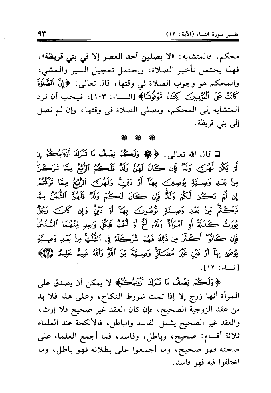 * قال الله تعالى: {وَلَكُمْ نِصْفُ مَا تَرَكَ أَزْوَاجُكُمْ إِنْ لَمْ يَكُنْ لَهُنَّ وَلَدٌ فَإِنْ كَانَ لَهُنَّ وَلَدٌ فَلَكُمُ الرُّبُعُ مِمَّا تَرَكْنَ مِنْ بَعْدِ وَصِيَّةٍ يُوصِينَ بِهَا أَوْ دَيْنٍ وَلَهُنَّ الرُّبُعُ مِمَّا تَرَكْتُمْ إِنْ لَمْ يَكُنْ لَكُمْ وَلَدٌ فَإِنْ كَانَ لَكُمْ وَلَدٌ فَلَهُنَّ الثُّمُنُ مِمَّا تَرَكْتُمْ مِنْ بَعْدِ وَصِيَّةٍ تُوصُونَ بِهَا أَوْ دَيْنٍ وَإِنْ كَانَ رَجُلٌ يُورَثُ كَلَالَةً أَوِ امْرَأَةٌ وَلَهُ أَخٌ أَوْ أُخْتٌ فَلِكُلِّ وَاحِدٍ مِنْهُمَا السُّدُسُ فَإِنْ كَانُوا أَكْثَرَ مِنْ ذَلِكَ فَهُمْ شُرَكَاءُ فِي الثُّلُثِ مِنْ بَعْدِ وَصِيَّةٍ يُوصَى بِهَا أَوْ دَيْنٍ غَيْرَ مُضَارٍّ وَصِيَّةً مِنَ اللَّهِ وَاللَّهُ عَلِيمٌ حَلِيمٌ (١٢)} [النساء: ١٢].