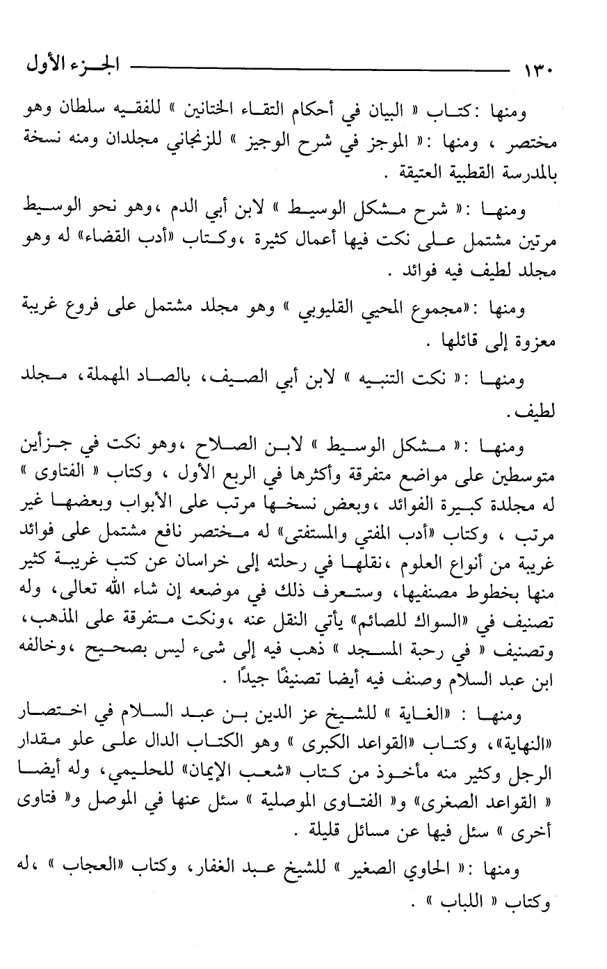 ومنها: "الغاية" للشيخ عز الدين بن عبد السلام في اختصار "النهاية"، وكتاب "القواعد الكبرى" وهو الكتاب الدال على علو مقدار الرجل وكثير منه مأخوذ من كتاب "شعب الإيمان" للحليمي، وله أيضا "القواعد الصغرى" و"الفتاوى الموصلية" سئل عنها في الموصل و"فتاوى أخرى" سئل فيها عن مسائل قليلة.