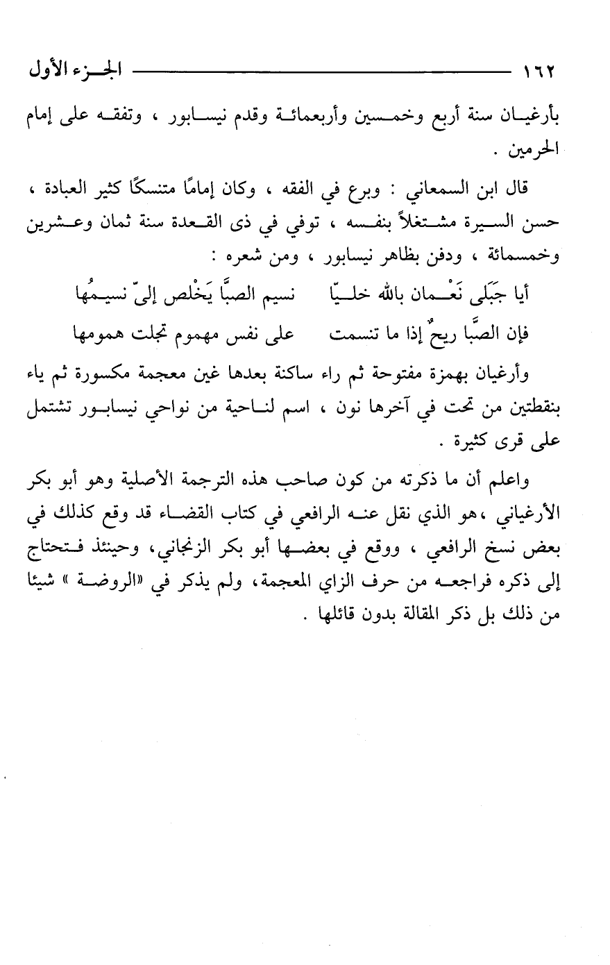 واعلم أن ما ذكرته من كون صاحب هذه الترجمة الأصلية وهو أَبو بكر الأرغياني، هو الذي نقل عنه الرافعي في كتاب القضاء قد وقع كذلك في بعض نسخ الرافعي، ووقع في بعضها أَبو بكر الزنجاني، وحينئذ فتحتاج إلى ذكره فراجعه من حرف الزاي المعجمة، ولم يذكر في "الروضة" شيئا من ذلك بل ذكر المقالة بدون قائلها.