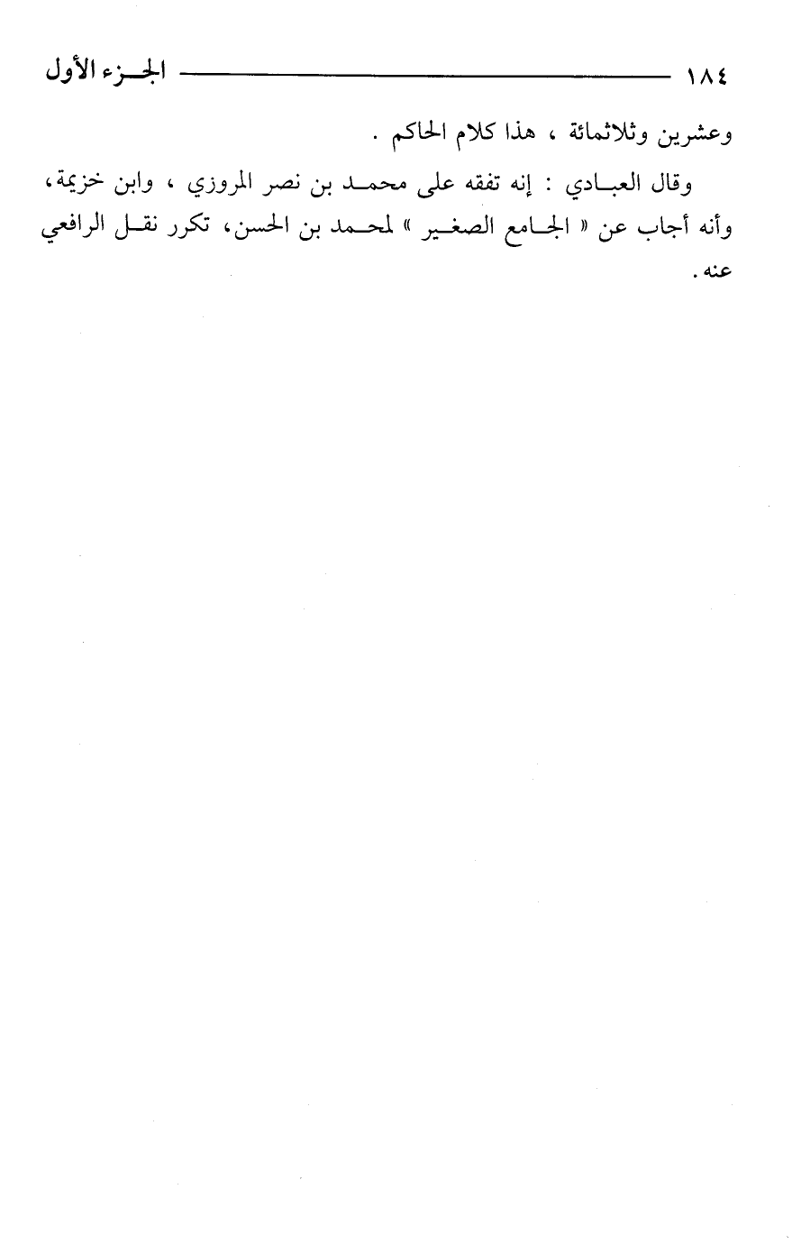 وقال العبادي: إنه تفقه على محمد بن نصر المروزي، وابن خزيمة، وأنه أجاب عن "الجامع الصغير" لمحمد بن الحسن، تكرر نقل الرافعي عنه.