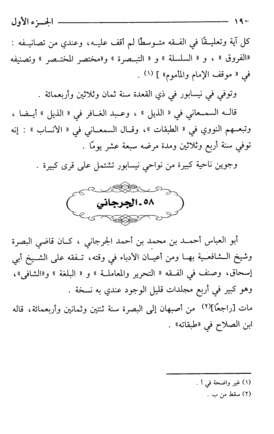 أَبو العباس أحمد بن محمد بن أحمد الجرجاني، كان قاضي البصرة وشيخ الشافعية بها ومن أعيان الأدباء في وقته، تفقه على الشيخ أبي إسحاق، وصنف في الفقه "التحرير والمعاملة" و"البلغة" و"الشافى"، وهو كبير في أربع مجلدات قليل الوجود عندي به نسخة.