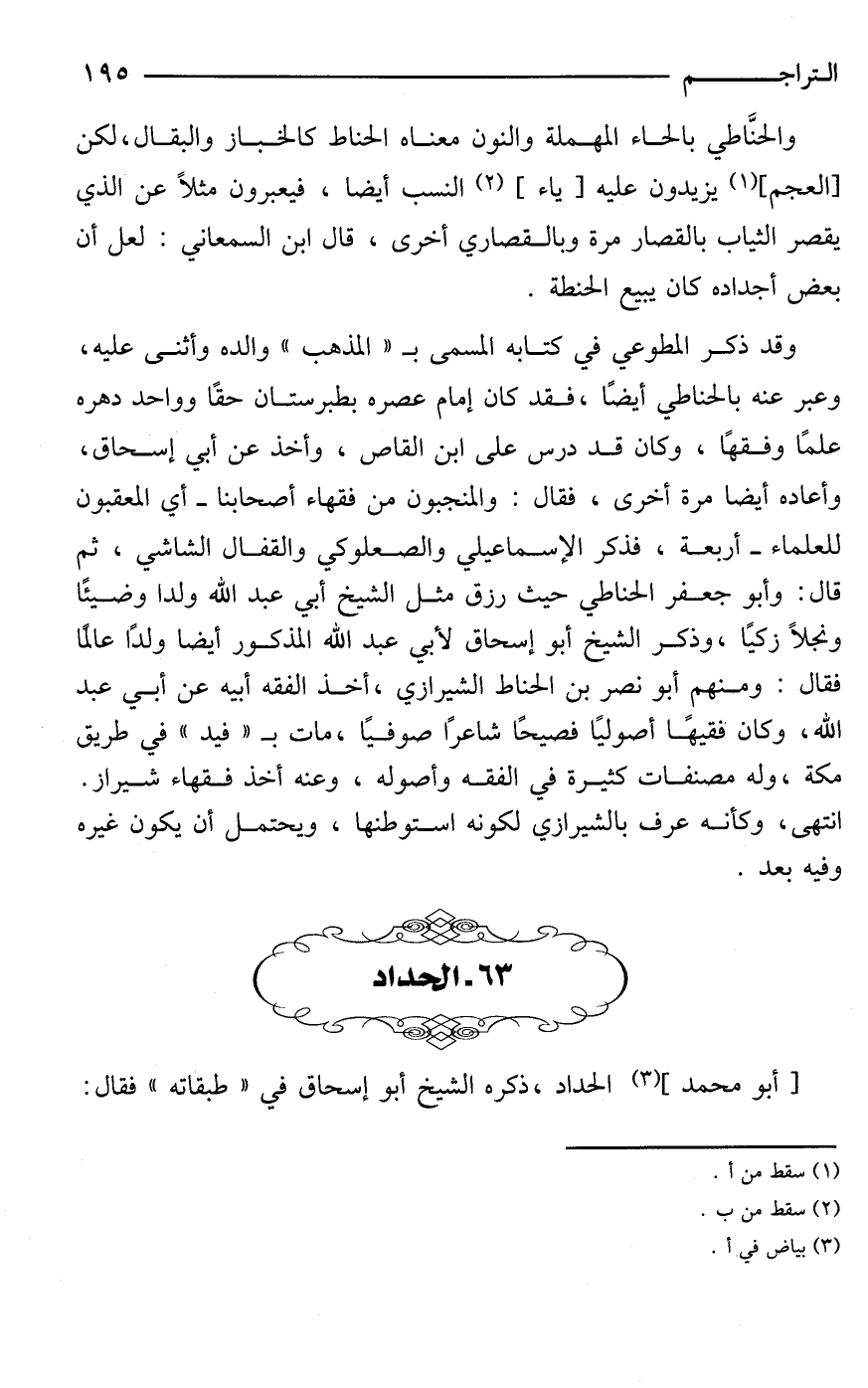 [أَبو محمد] (¬3) الحداد، ذكره الشيخ أَبو إسحاق في "طبقاته" فقال:
