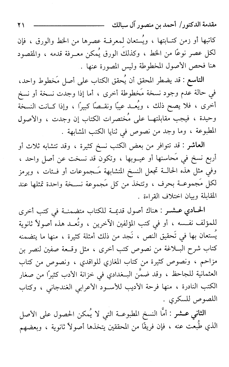 الثاني عشر: أمَّا النسخ المطبوعة التي لا يُمكن الحصول على الأصل الذي طُبعت عنه، فإن فريقًا من المحققين يتخذها أصولًا ثانوية، وبعضهم
