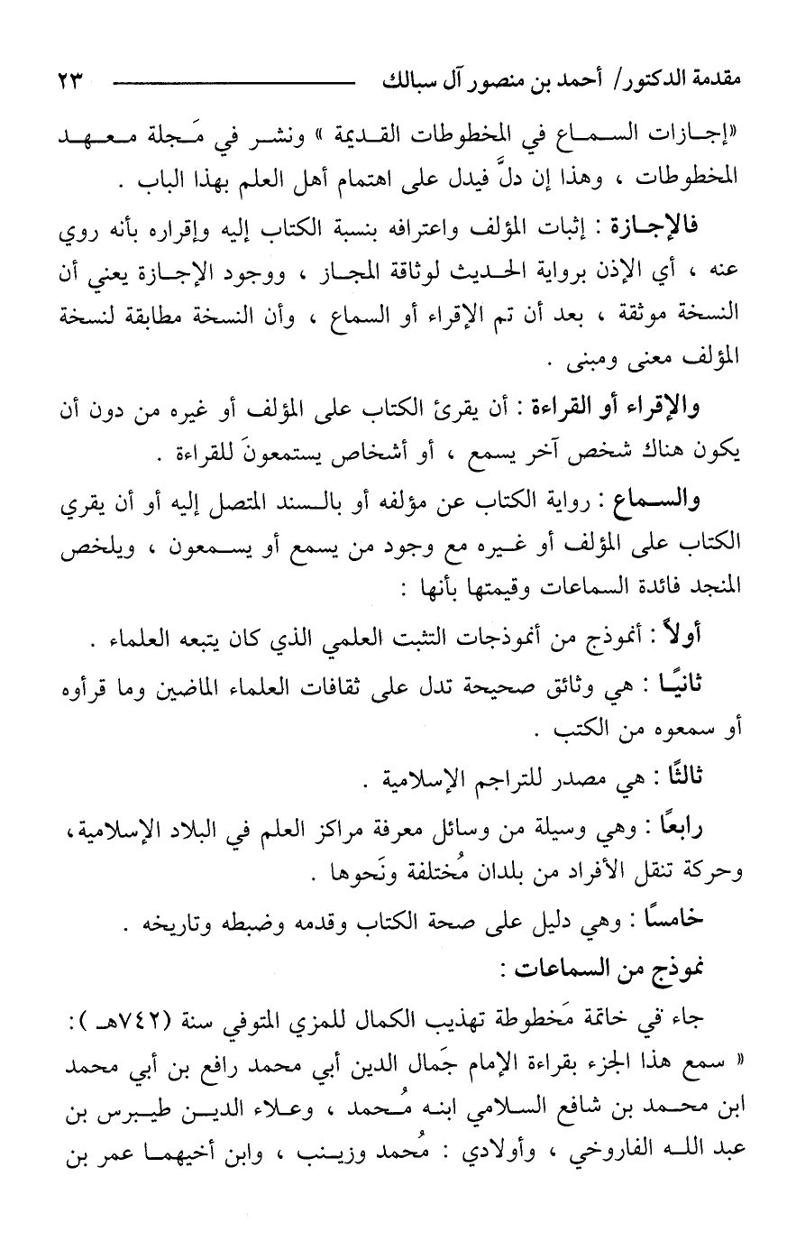 "إجازات السماع في المخطوطات القديمة" ونشر في مَجلة معهد المخطوطات، وهذا إن دلَّ فيدل على اهتمام أهل العلم بهذا الباب.