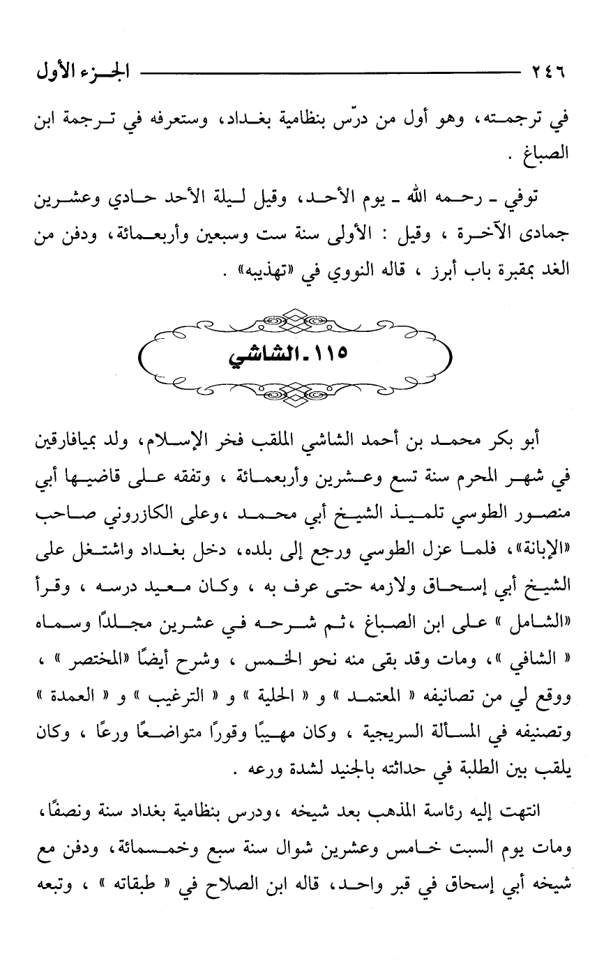 في ترجمته، وهو أول من درّس بنظامية بغداد، وستعرفه في ترجمة ابن الصباغ.