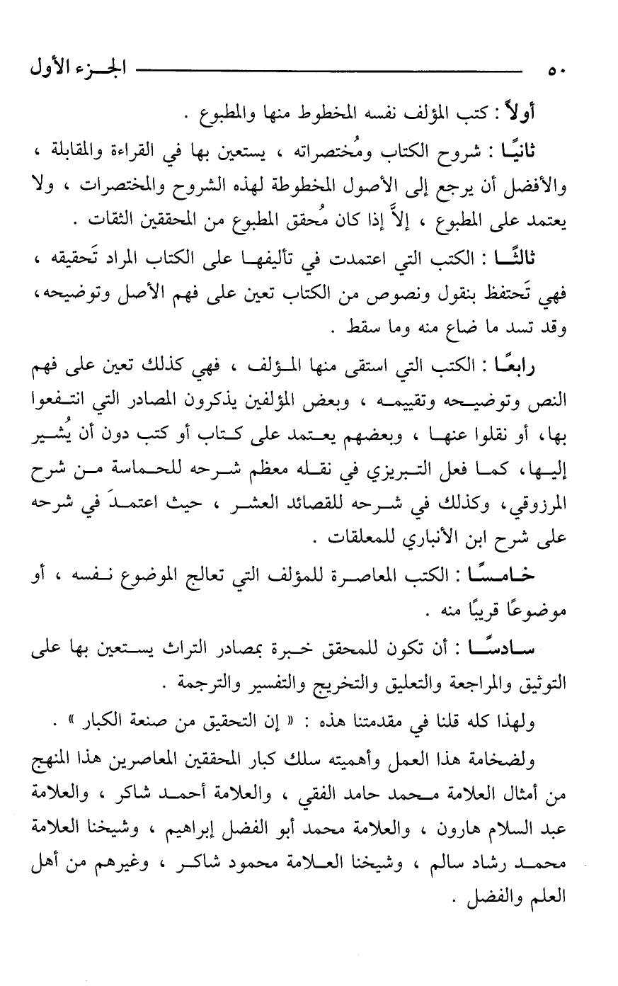 ولضخامة هذا العمل وأهميته سلك كبار المحققين المعاصرين هذا المنهج من أمثال العلامة محمد حامد الفقي، والعلامة أحمد شاكر، والعلامة عبد السلام هارون، والعلامة محمد أَبو الفضل إبراهيم، وشيخنا العلامة محمد رشاد سالم، وشيخنا العلامة محمود شاكر، وغيرهم من أهل العلم والفضل.