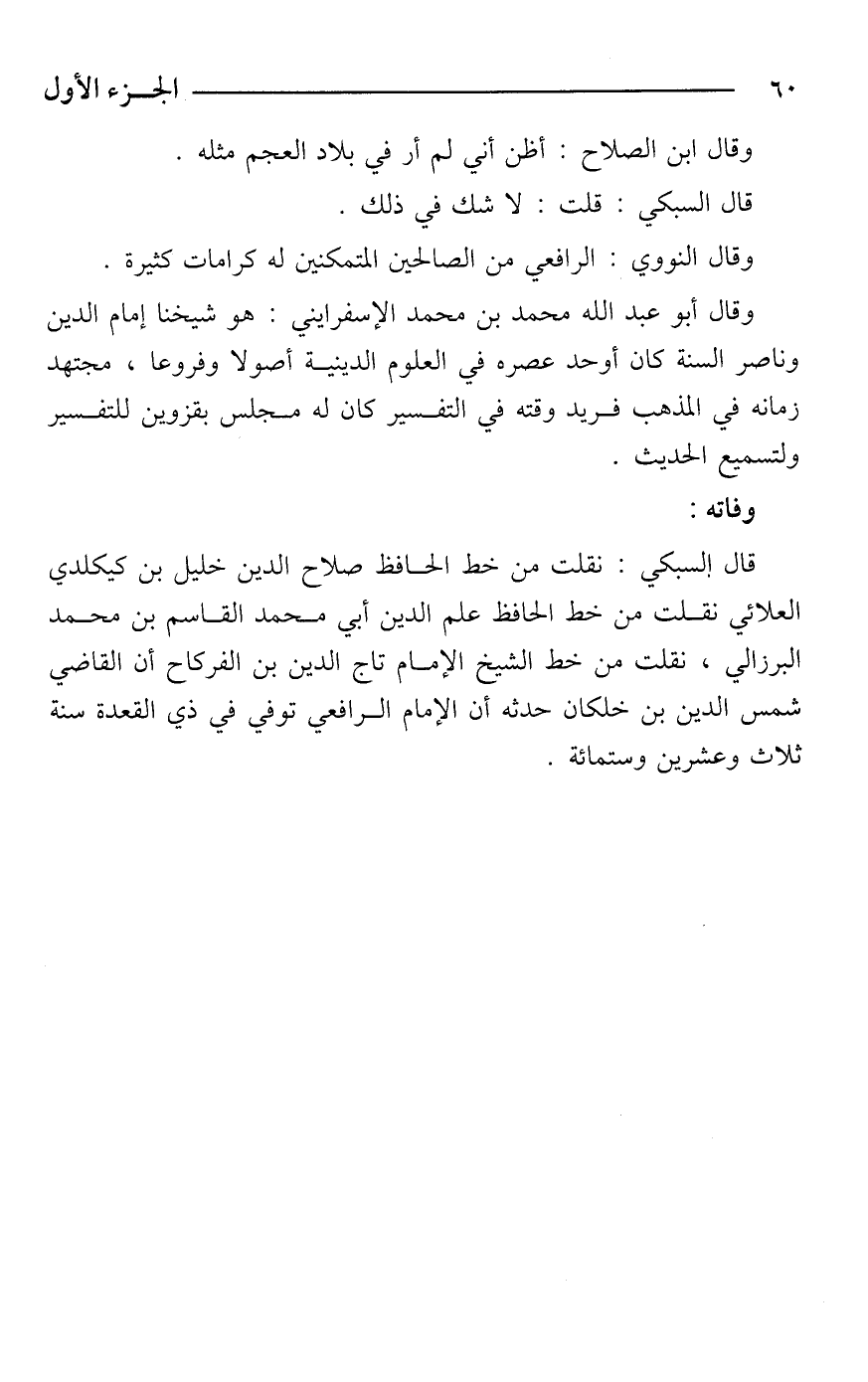 وقال النووي: الرافعي من الصالحين المتمكنين له كرامات كثيرة.