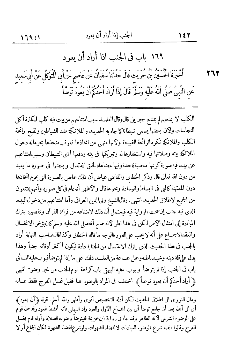 [262] أَرَادَ أَحَدُكُمْ أَنْ يَعُودَ تَوَضَّأَ اُخْتُلِفَ فِي الْمُرَادِ بِالْوُضُوءِ هُنَا فَقِيلَ غَسْلُ الْفَرْجِ فَقَطْ مِمَّا بِهِ