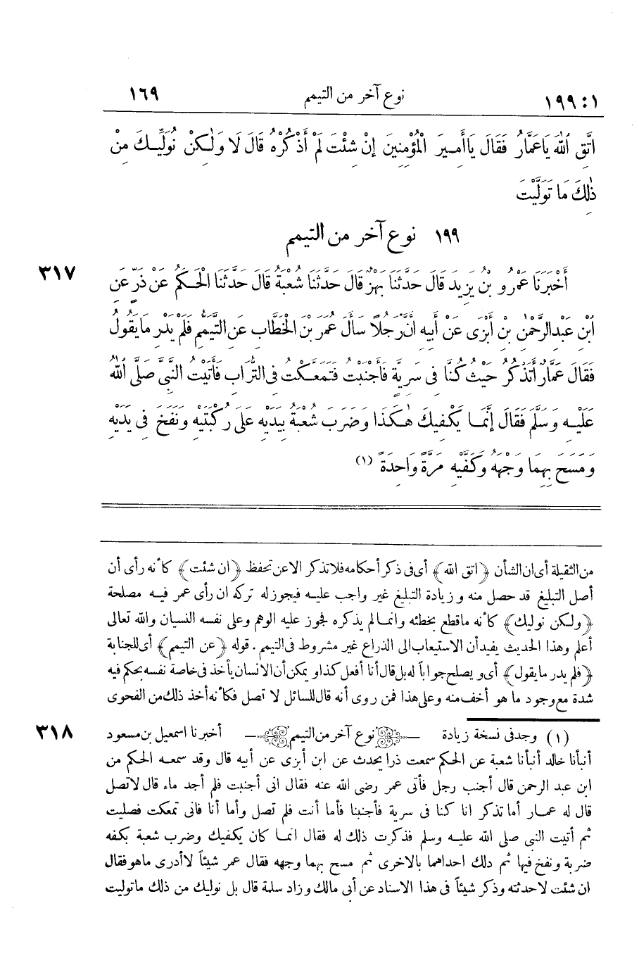 [317] عَن التَّيَمُّم أَي للجنابة فَلم يدر مَا يَقُول أَي وَيصْلح جَوَابا لَهُ بل قَالَ أَنا أفعل كَذَا وَيُمكن أَن الْإِنْسَان يَأْخُذ فِي خَاصَّة نَفسه بِحكم فِيهِ شدَّة مَعَ وجود مَا هُوَ أخف مِنْهُ وعَلى هَذَا فَمن روى أَنه قَالَ للسَّائِل لَا تصل فَكَأَنَّهُ أَخذ ذَلِك من الفحوى