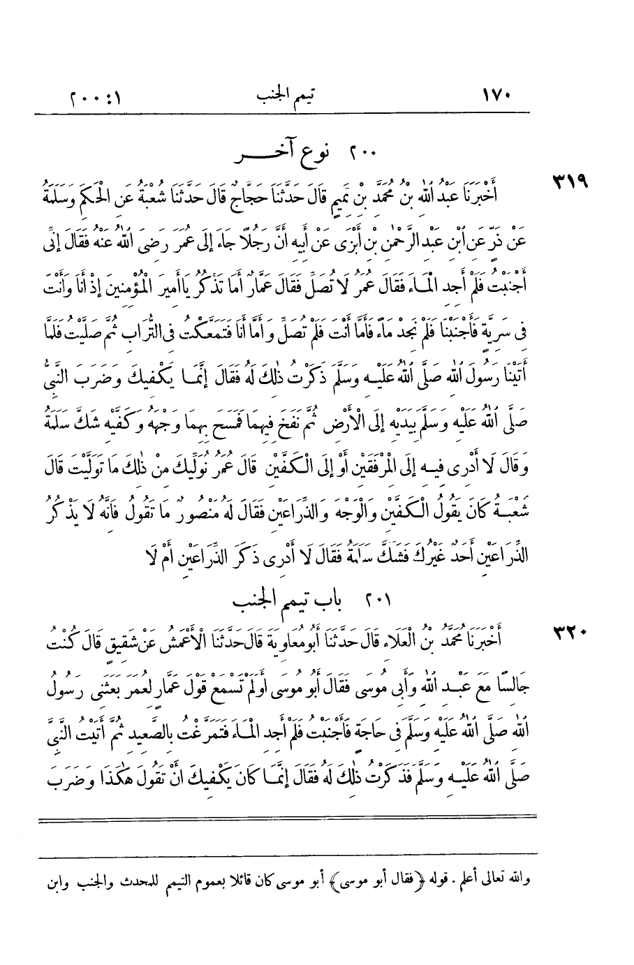 [320] فَقَالَ أَبُو مُوسَى أَبُو مُوسَى كَانَ قَائِلا بِعُمُوم التَّيَمُّم للمحدث وَالْجنب وبن