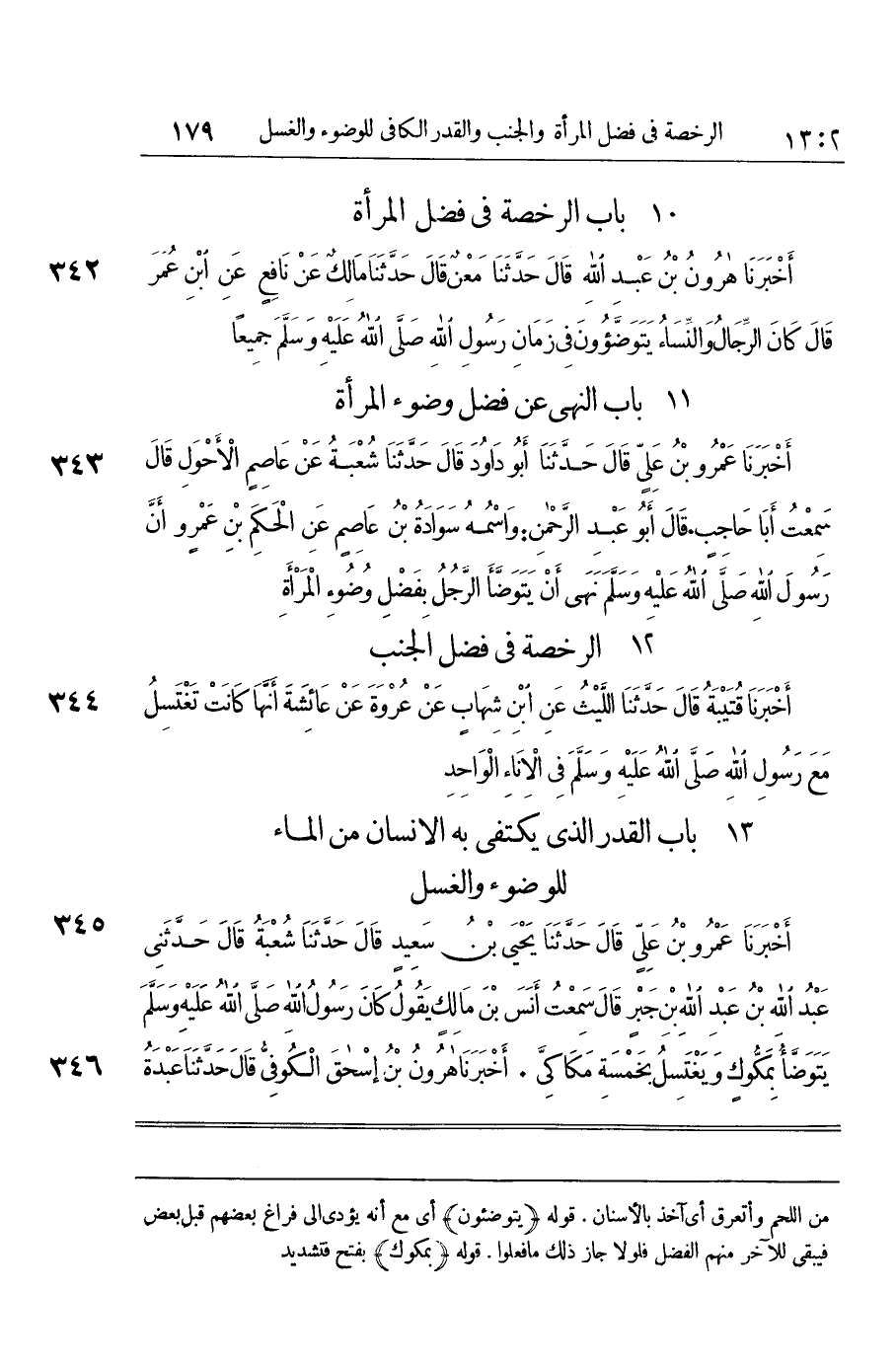 من اللَّحْم وأتعرق أَي آخذ بالأسنان قَوْله يتوضؤون أَي مَعَ أَنه يُؤَدِّي إِلَى فرَاغ بَعضهم قبل بعض فَيبقى للْآخر مِنْهُم الْفضل فلولا جَازَ ذَلِك مَا فعلوا قَوْله بمكوك بِفَتْح فتشديد