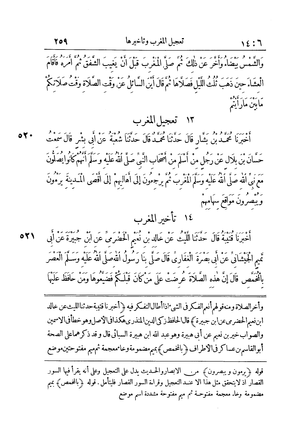 [521] أَخْبَرَنَا قُتَيْبَةُ حَدَّثَنَا اللَّيْثُ عَنْ خَالِدِ بْنِ نُعَيْمٍ الْحَضْرَمِيِّ عَنِ بْنِ جُبَيْرَةَ قَالَ الْحافِظُ زَكِيُّ الدِّينِ الْمُنْذِرِيُّ هَكَذَا فِي الْأَصْلِ وَهُوَ خَطَأٌ فِي الِاسْمَيْنِ وَالصَّوَابُ خَيْرُ بْنُ نُعَيْمٍ عَنْ أَبِي هُبَيْرَةَ وَهُوَ عَبْدُ اللَّهِ بْنُ هُبَيْرَةَ السَّبَائِيُّ قَالَ وَقَدْ ذَكَرَهُمَا عَلَى الصِّحَّةِ أَبُو الْقَاسِمِ بْنُ عَسَاكِرَ فِي الْأَطْرَافِ بِالْمُخَمَصِ بِمِيمٍ مَضْمُومَةٍ وَخَاءٍ مُعْجَمَةٍ ثُمَّ مِيمٍ مَفْتُوحَتَيْنِ مَوضِع مَعْرُوف