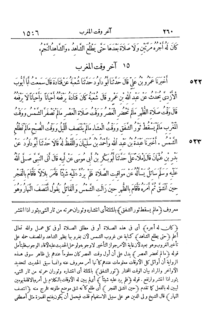 [522] مَا لَمْ يَسْقُطْ ثَوْرُ الشَّفَقِ بِالْمُثَلَّثَةِ أَيِ انْتِشَارُهُ وَثَوَرَانُ حُمْرَتِهِ مِنْ ثَارَ الشَّيْءُ يَثُورُ إِذا انْتَشَر وارتفع
