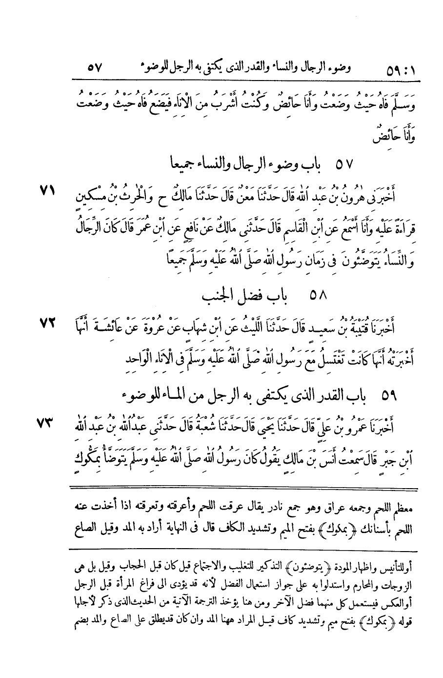 [73] بِمَكُّوكٍ بِفَتْحِ الْمِيمِ وَتَشْدِيدِ الْكَافِ قَالَ فِي النِّهَايَةِ أَرَادَ بِهِ الْمُدَّ وَقِيلَ الصَّاعَ