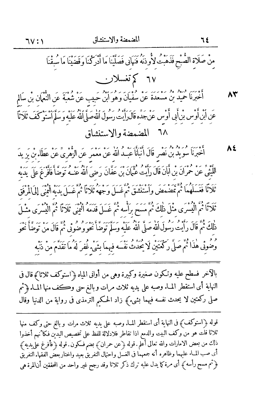 [83] اسْتَوْكَفَ ثَلَاثًا قَالَ فِي النِّهَايَةِ أَيِ اسْتَقْطَرَ الْمَاءَ وَصَبَّهُ عَلَى يَدَيْهِ ثَلَاثَ مَرَّاتٍ وَبَالَغَ حَتَّى وكف مِنْهَا المَاء
