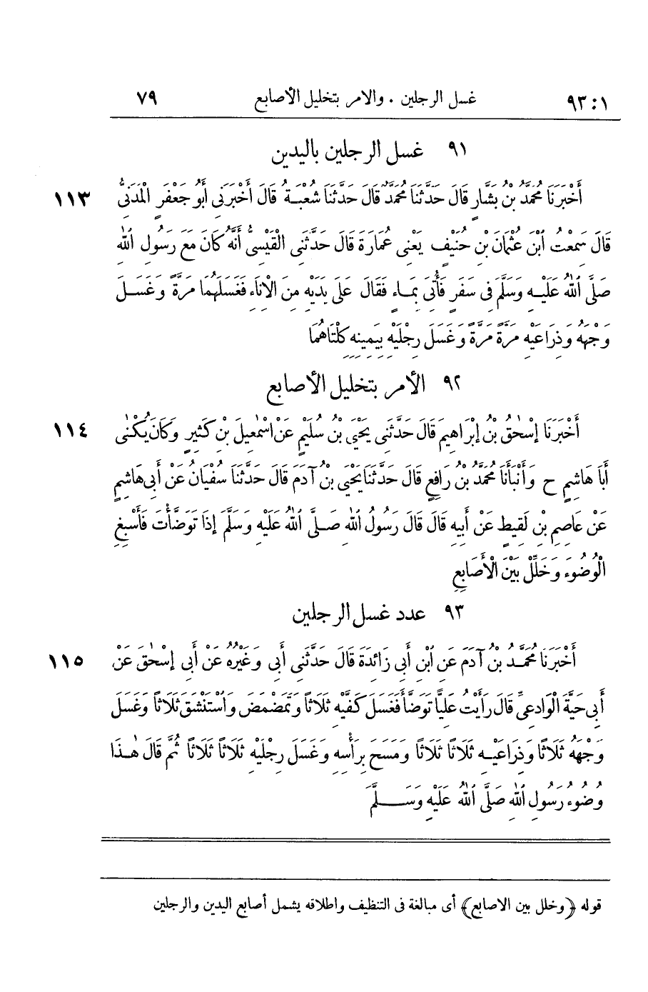 [114] وخلل بَين الْأَصَابِع أَي مُبَالغَة فِي التَّنْظِيف واطلاقه يَشْمَل أَصَابِع الْيَدَيْنِ وَالرّجلَيْنِ