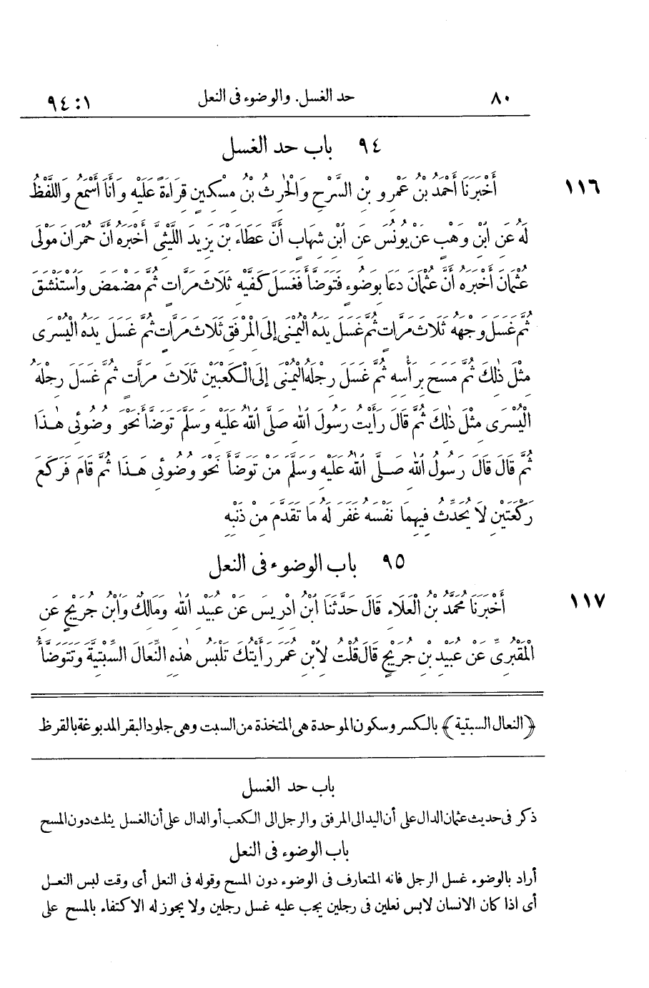 [117] النِّعَالُ السِّبْتِيَّةُ بِالْكَسْرِ وَسُكُونِ الْمُوَحَّدَةِ هِيَ الْمُتَّخَذَةُ مِنَ السِّبْتِ وَهِيَ جُلُودُ الْبَقَرِ الْمَدْبُوغَةِ بِالْقَرَظِ سُمِّيَتْ بِذَلِكَ لِأَنَّ شَعْرَهَا قَدْ سَبَتَ عَنْهَا أَيْ حُلِقَ وَأُزِيلَ وَقِيلَ لِأَنَّهَا أُسْبِتَتْ بِالدِّبَاغِ أَي لانت