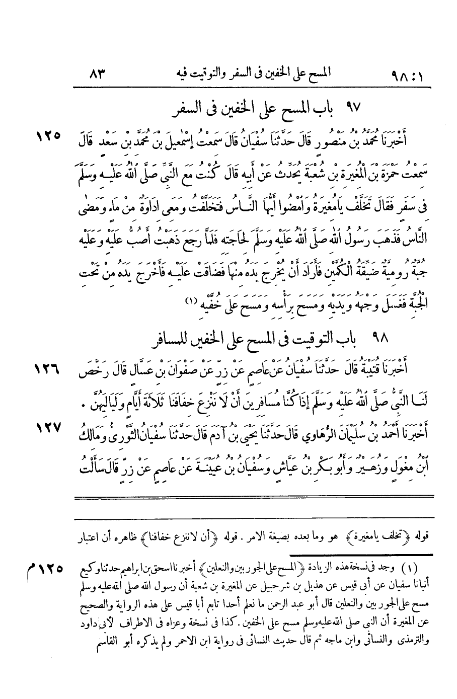 [126] أَن لَا ننزع خفافنا ظَاهره أَن اعْتِبَار الْمدَّة من وَقت اللّبْس لَا من وَقت الْمسْح أَو الْحَدث وَالله تَعَالَى أعلم قَوْله