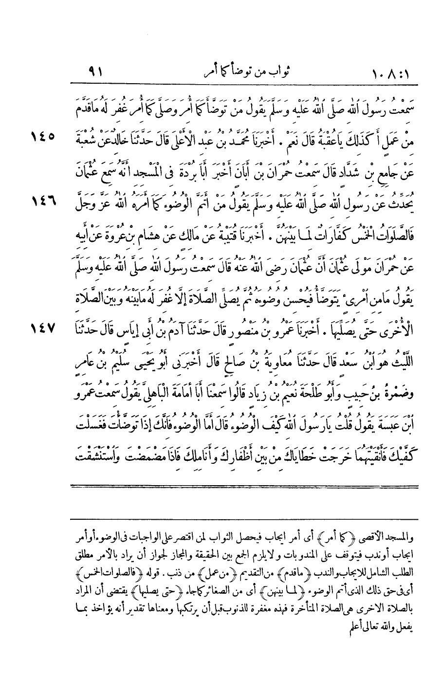 [146] حَتَّى يُصليهَا يَقْتَضِي أَن المُرَاد بِالصَّلَاةِ الْأُخْرَى هِيَ الصَّلَاة الْمُتَأَخِّرَة فَهَذِهِ مغْفرَة للذنوب قبل أَن يرتكبها وَمَعْنَاهَا تَقْدِير أَنه يُؤَاخذ بِمَا يفعل وَالله تَعَالَى أعلم قَوْله