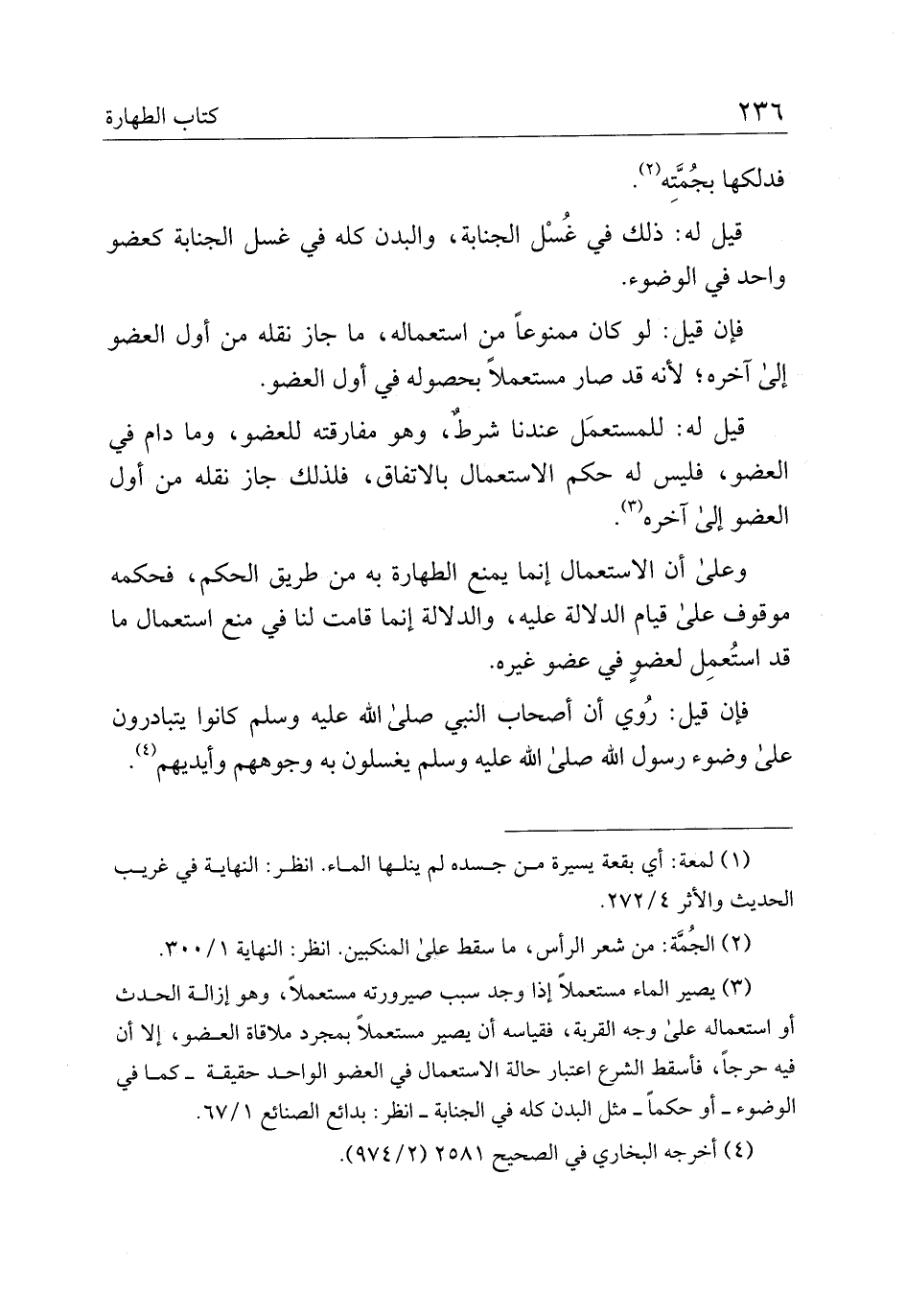 فإن قيل: لو كان ممنوعًا من استعماله، ما جاز نقله من أول العضو إلى آخره؛ لأنه قد صار مستعملًا بحصوله في أول العضو.