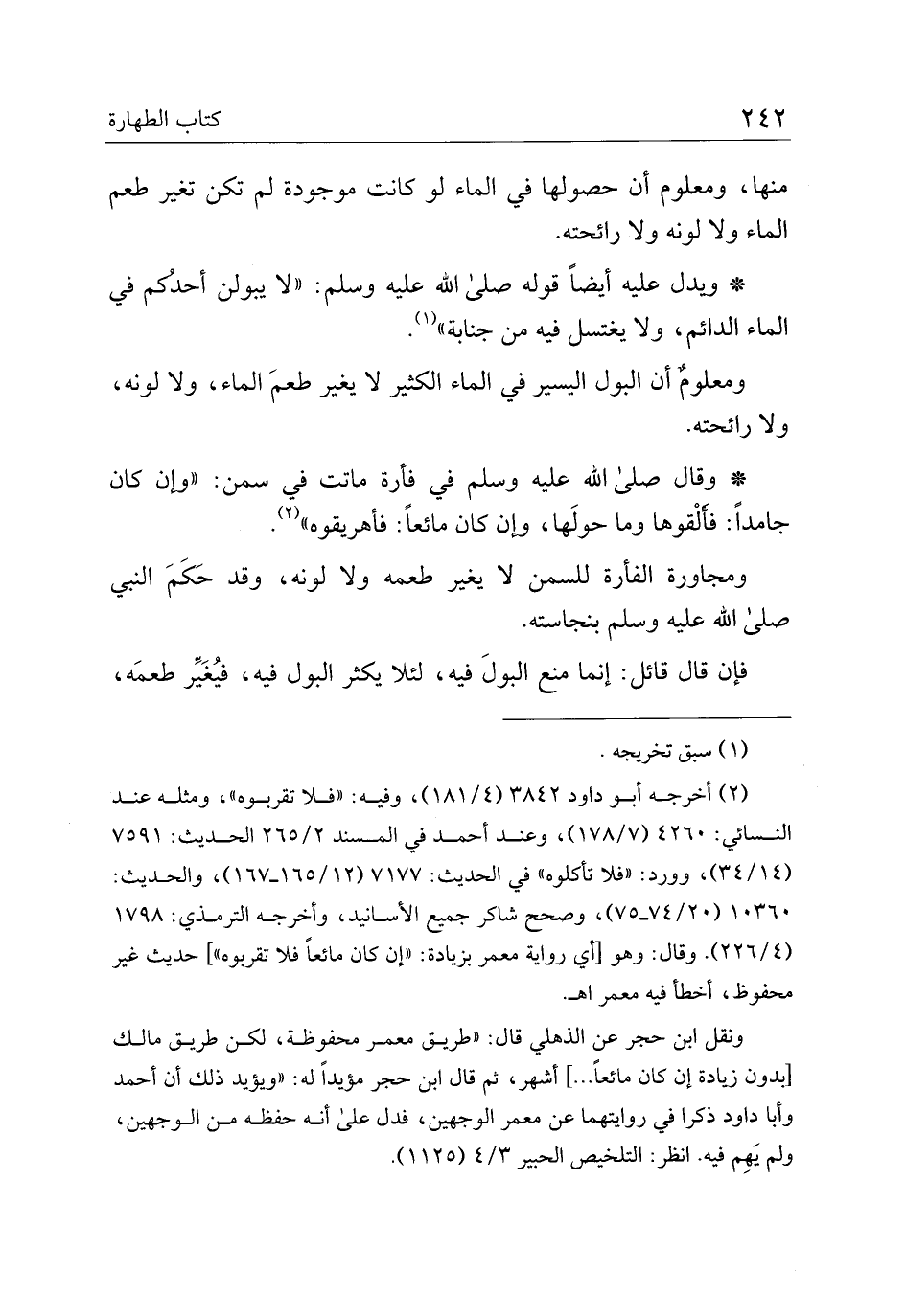 ومعلوم أن البول اليسير في الماء الكثير لا يغير طعم الماء، ولا لونه، ولا رائحته.
