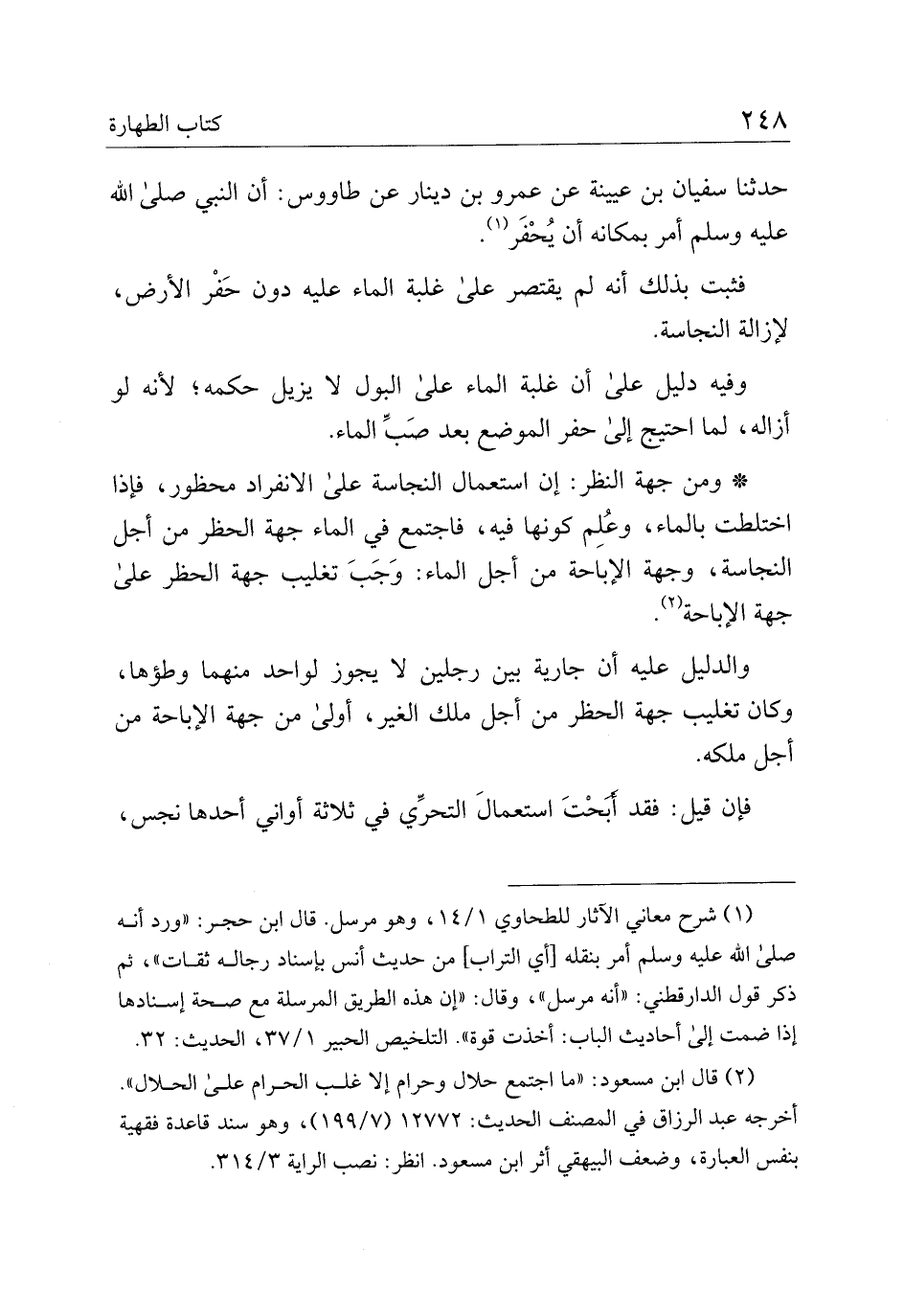 * ومن جهة النظر: إن استعمال النجاسة على الانفراد محظور، فإذا اختلطت بالماء، وعلم كونها فيه، فاجتمع في الماء جهة الحظر من أجل النجاسة، وجهة الإباحة من أجل الماء: وجب تغليب جهة الحظر على جهة الإباحة.