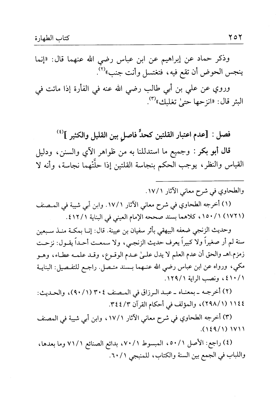 قال أبو بكر: وجميع ما استدللنا به من ظواهر الآي والسنن، ودليل القياس والنظر، يوجب الحكم بنجاسة القلتين إذا حلتهما نجاسة، وأنه لا