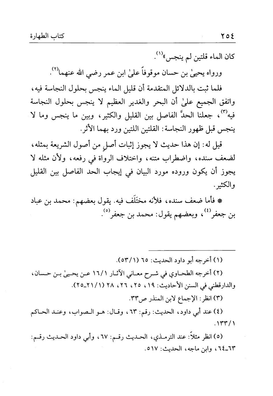 فلما ثبت بالدلائل المتقدمة أن قليل الماء ينجس بحلول النجاسة فيه، واتفق الجميع على أن البحر والغدير العظيم لا ينجس بحلول النجسة فيه، جعلنا الحد الفاصل بين القليل والكثير، وبين ما ينجس وما لا ينجس قبل ظهور النجاسة: القلتين اللتين ورد بهما الأثر.