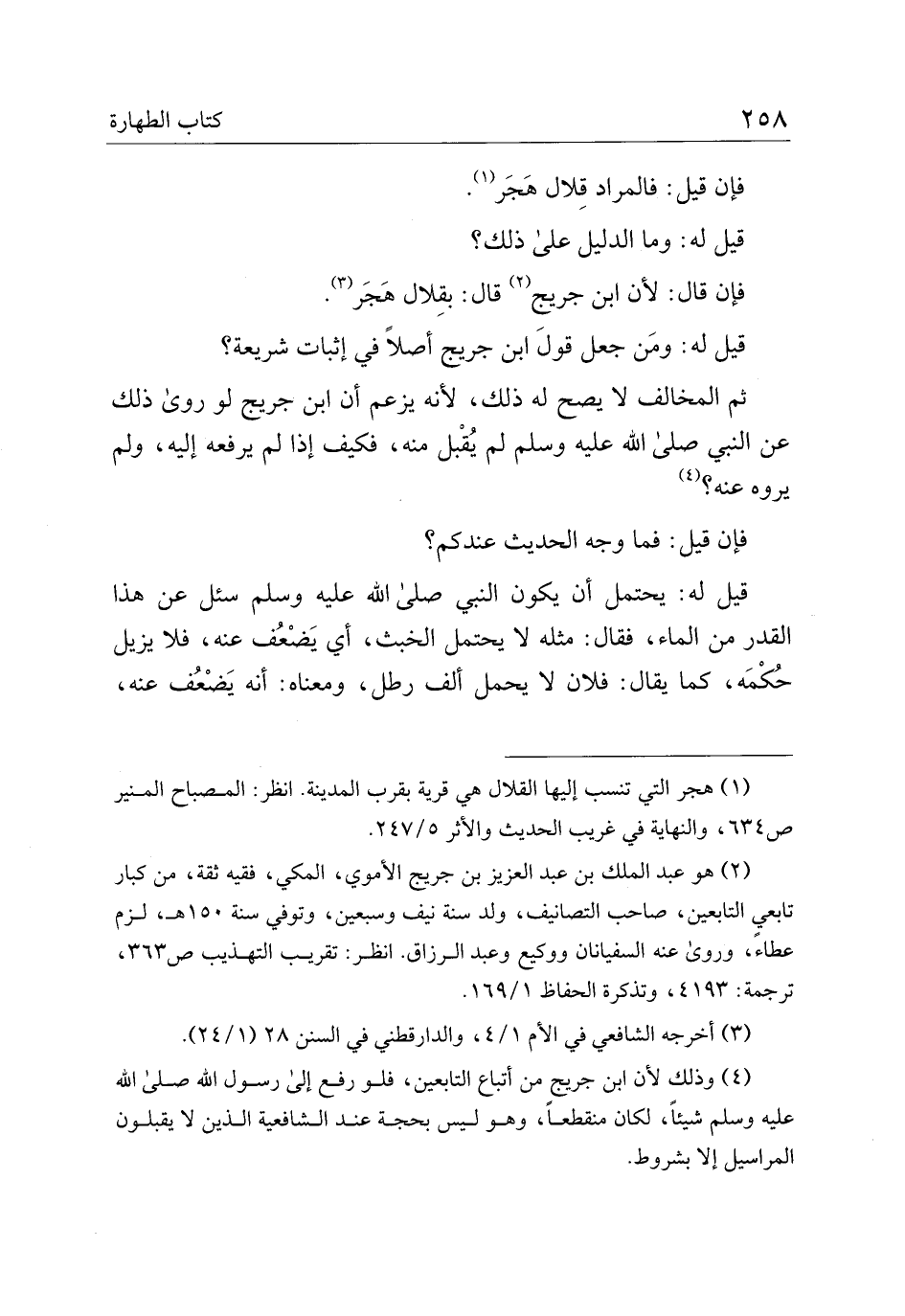 فإن قال: لأن ابن جريج قال: بقلال هجر.
