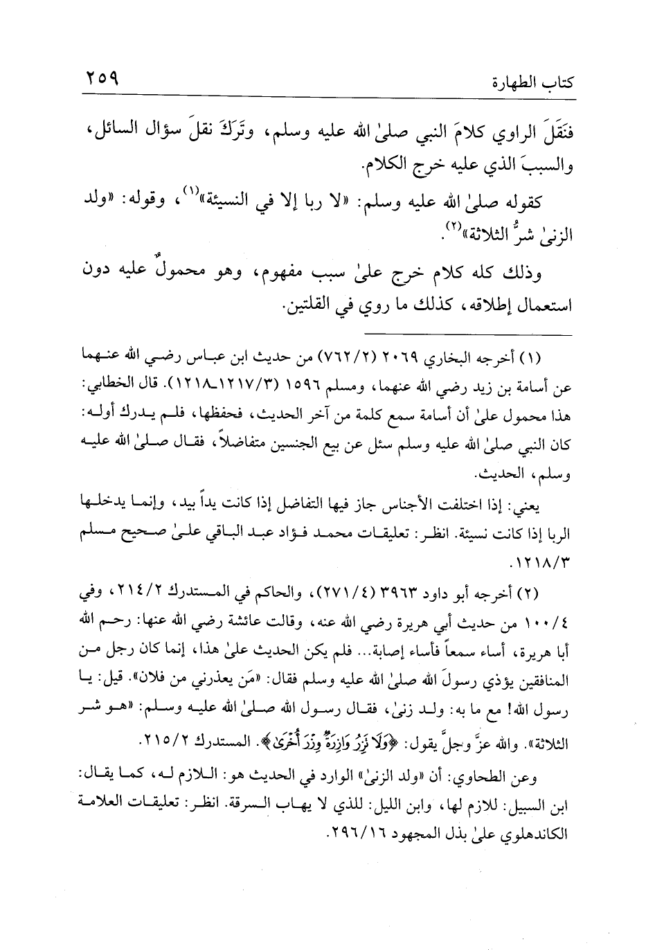 فنقل الراوي كلام النبي صلى الله عليه وسلم، وترك نقل سؤال السائل، والسبب الذي عليه خرج الكلام.