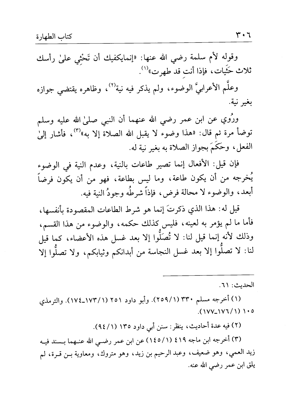 وقوله لأم سلمة رضي الله عنها:"إنما يكفيك أن تحثي على رأسك ثلاث حثيات، فإذا أنت قد طهرت".