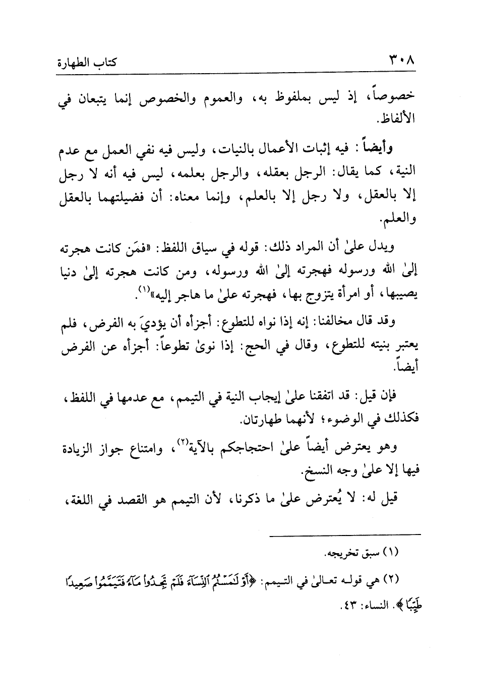 ويدل على أن المراد ذلك: قوله في سياق اللفظ:"فمن كانت هجرته إلى الله ورسوله فهجرته إلى الله ورسوله، ومن كانت هجرته إلى دنيا يصيبها، أو امرأة يتزوج بها، فهجرته على ما هاجر إليه".