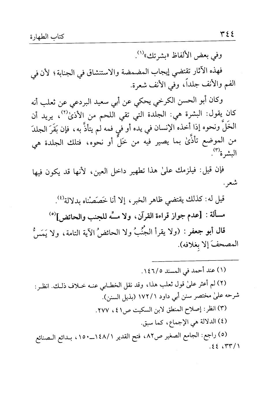 قال أبو جعفر: (ولا يقرأ الجنب ولا الحائض الآية التامة، ولا يمس المصحف إلا بغلافه).