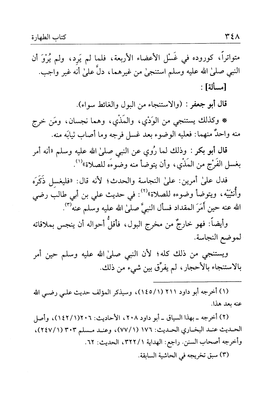 قال أبو جعفر: (والاستنجاء من البول والغائط سواء).