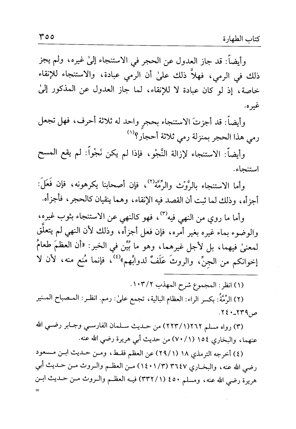 وأيضًا: الاستنجاء لإزالة النجو، فإذا لم يكن نجوا: لم يقع المسح استنجاء.