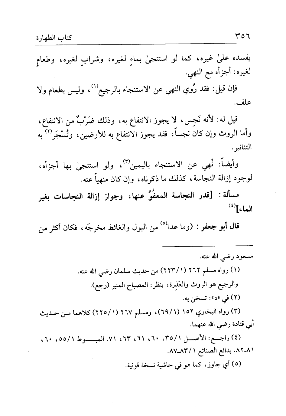 مسألة:] قدر النجاسة المعفو عنها، وجواز إزالة النجاسات بغير الماء [
