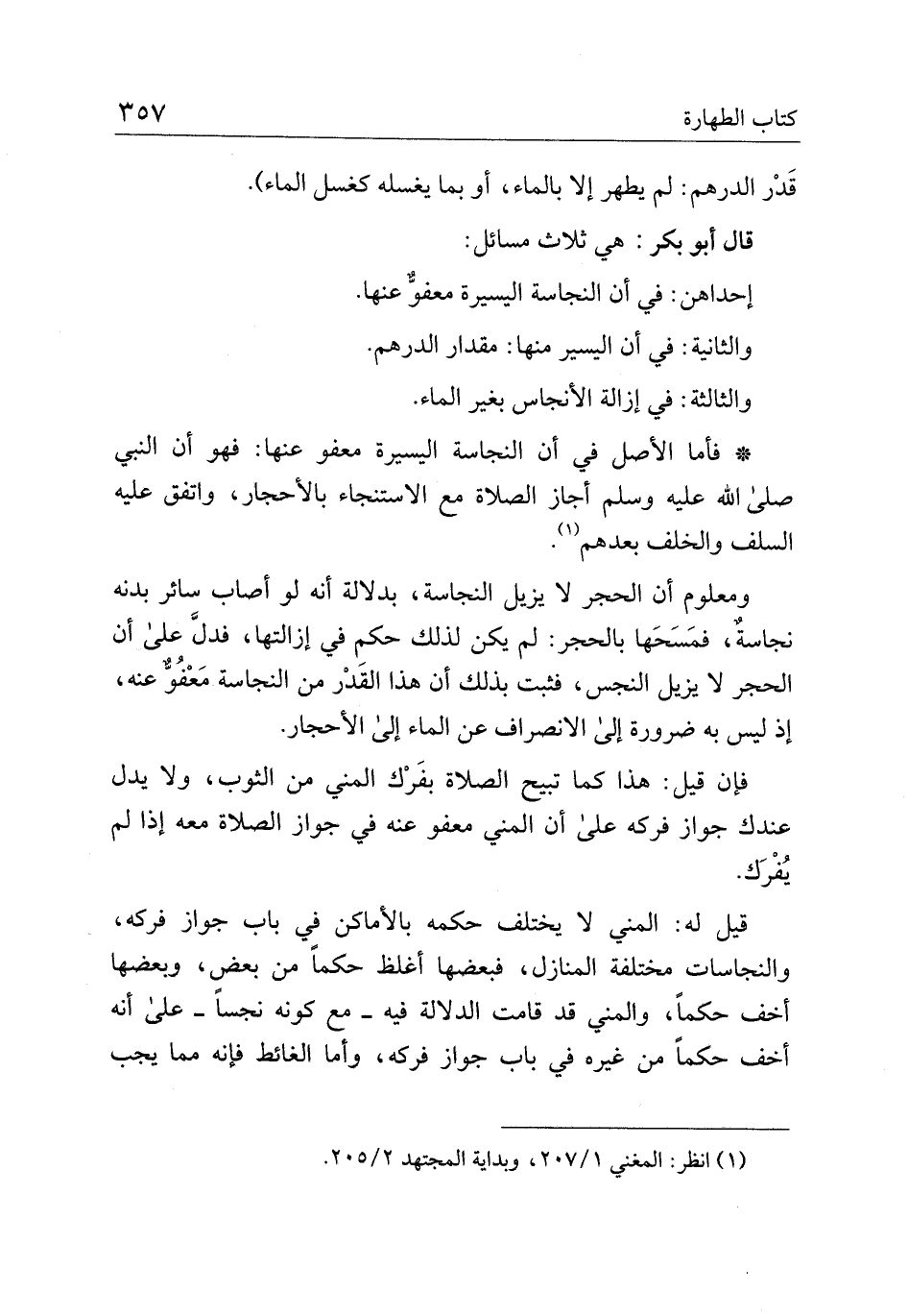 ومعلوم أن الحجر لا يزيل النجاسة، بدلالة أنه لو أصاب سائر بدنه نجاسة، فمسحها بالحجر: لم يكن لذلك حكم في إزالتها، فدل على أن الحجر لا يزيل النجس، فثبت بذلك أن هذا القدر من النجاسة معفو عنه، إذ ليس به ضرورة إلى الانصراف عن الماء إلى الأحجار.