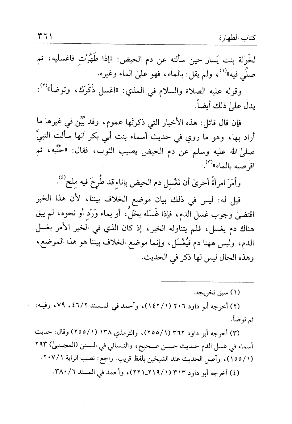 فإن قال قائل: هذه الأخبار التي ذكرتها عموم، وقد بين في غيرها ما أراد بها، وهو ما روي في حديث أسماء بنت أبي بكر أنها سألت النبي صلى الله عليه وسلم عن دم الحيض يصيب الثوب، فقال: "حتيه، ثم اقرصيه بالماء".
