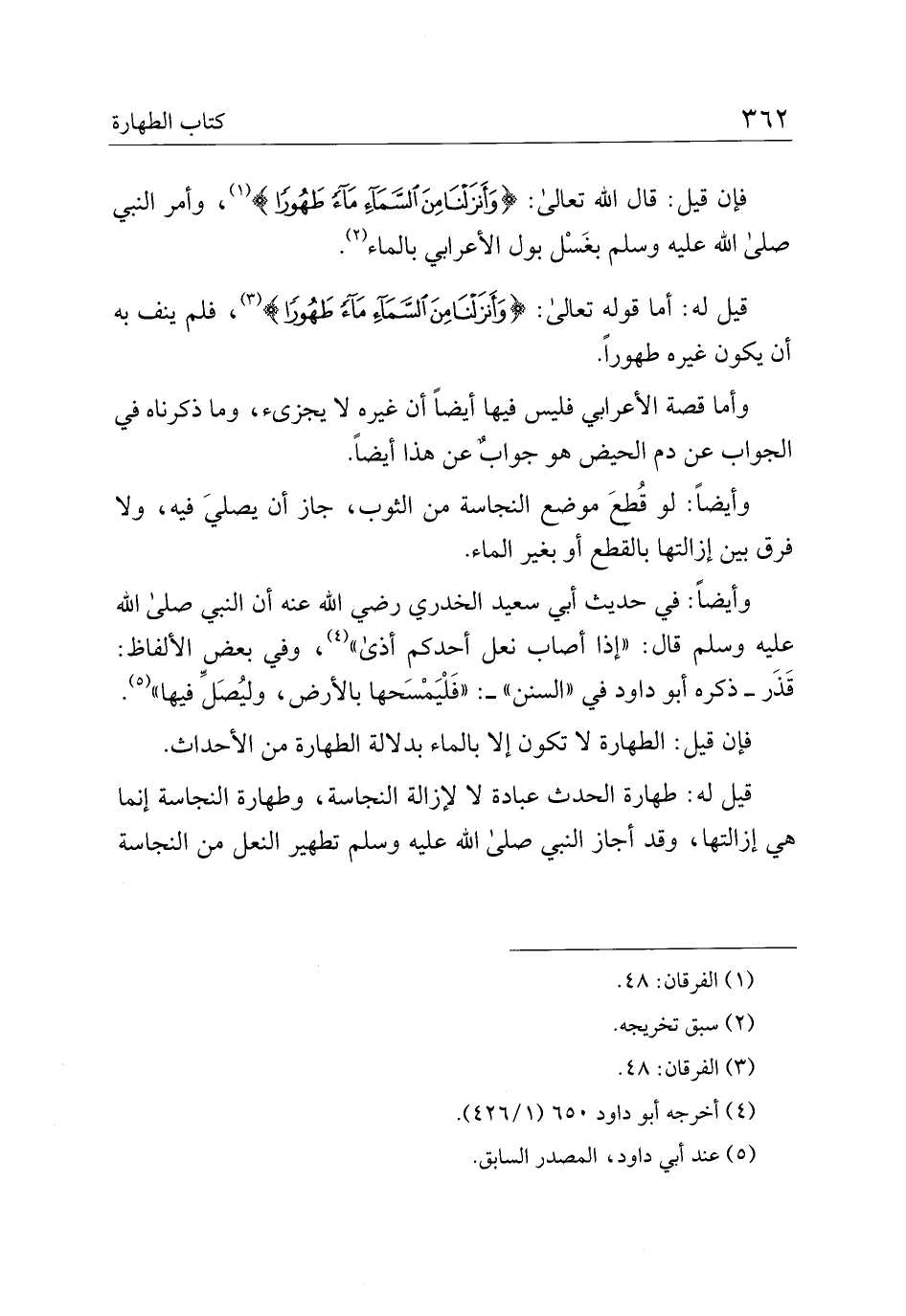 فإن قيل: قال الله تعالى: {وأنزلنا من السماء ماء طهورا}، وأمر النبي صلى الله عليه وسلم بغسل بول الأعرابي بالماء.