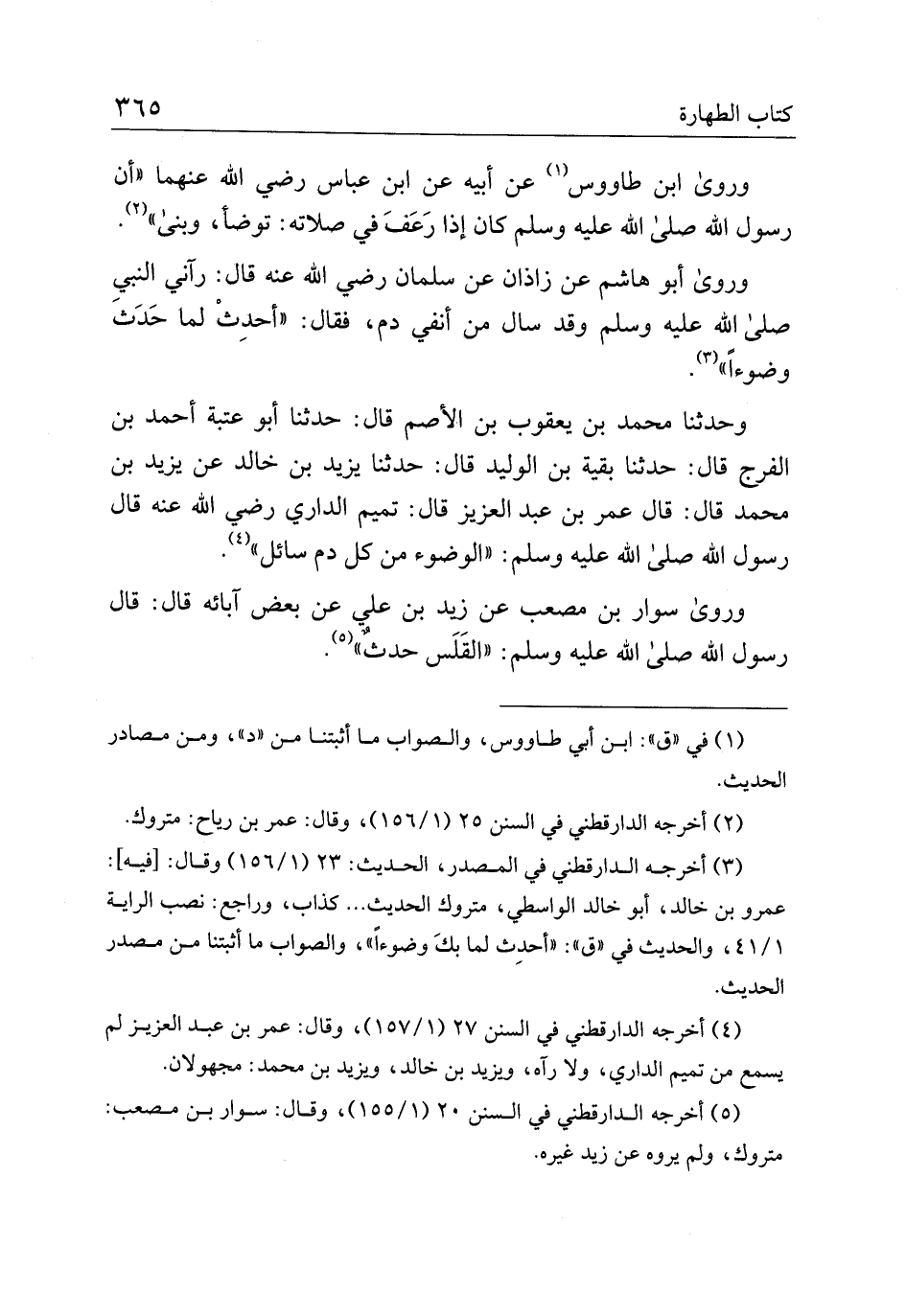 وحدثنا محمد بن يعقوب بن الأصم قال: حدثنا أبو عتبة أحمد بن الفرج قال: حدثنا بقية بن الوليد قال: حدثنا يزيد بن خالد عن يزيد بن محمد قال: قال عمر بن عبد العزيز قال: تميم الداري رضي الله عنه قال رسول الله صلى الله عليه وسلم: "الوضوء من كل دم سائل".