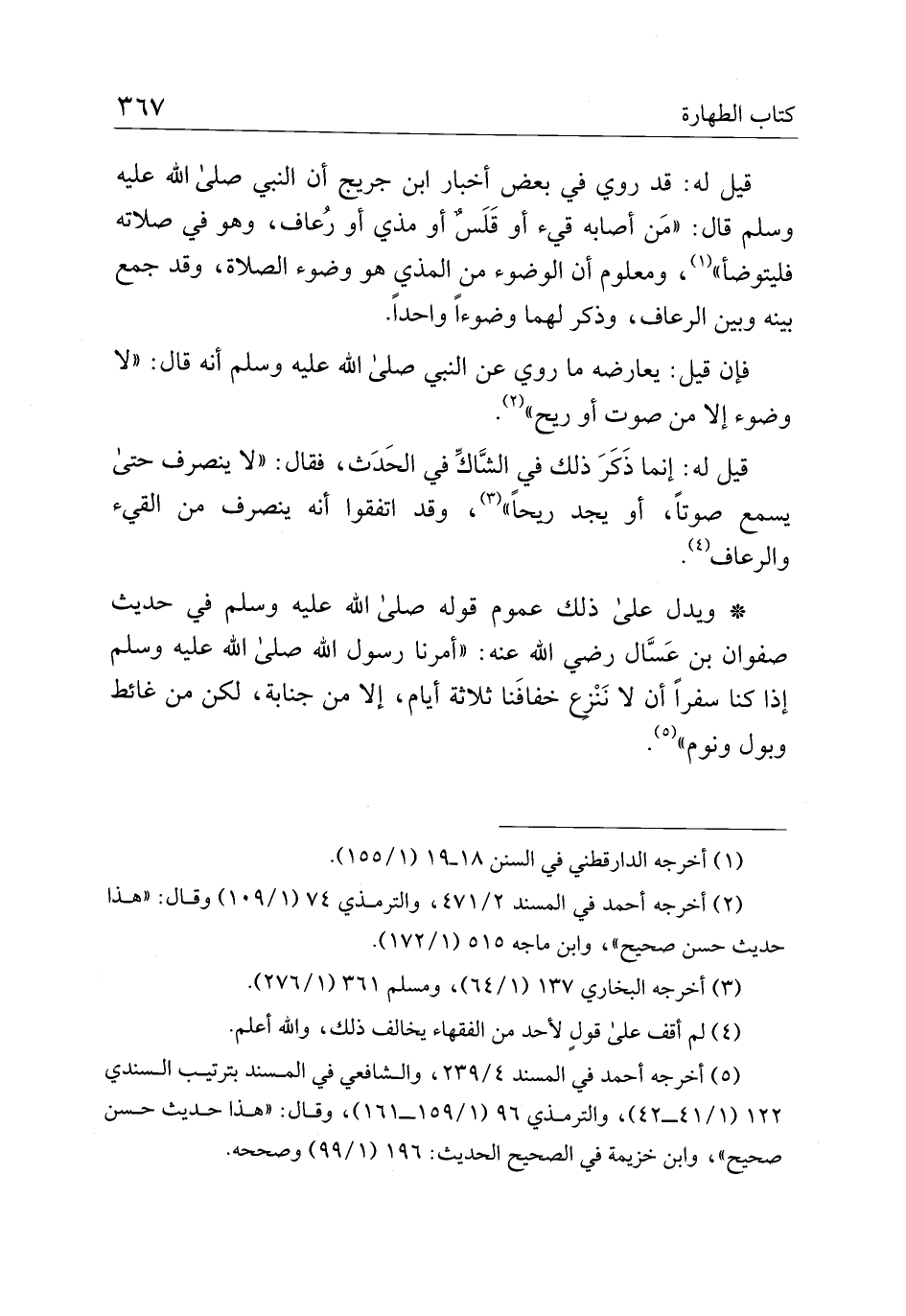 *ويدل على ذلك عموم قوله صلى الله عليه وسلم في حديث صفوان بن عسال رضي الله عنه: "أمرنا رسول الله صلى الله عليه وسلم إذا كنا سفرا أن لا ننزع خفافنا ثلاثة أيام، إلا من جنابة، لكن من غائط وبول ونوم".