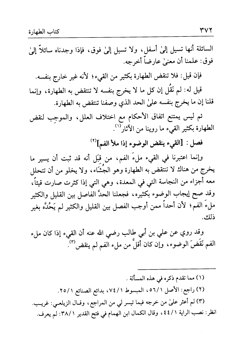 ثم ليس يمتنع اتفاق الأحكام مع اختلاف العلل، والموجب لنقض الطهارة بكثير القيء ما روينا من الآثار.