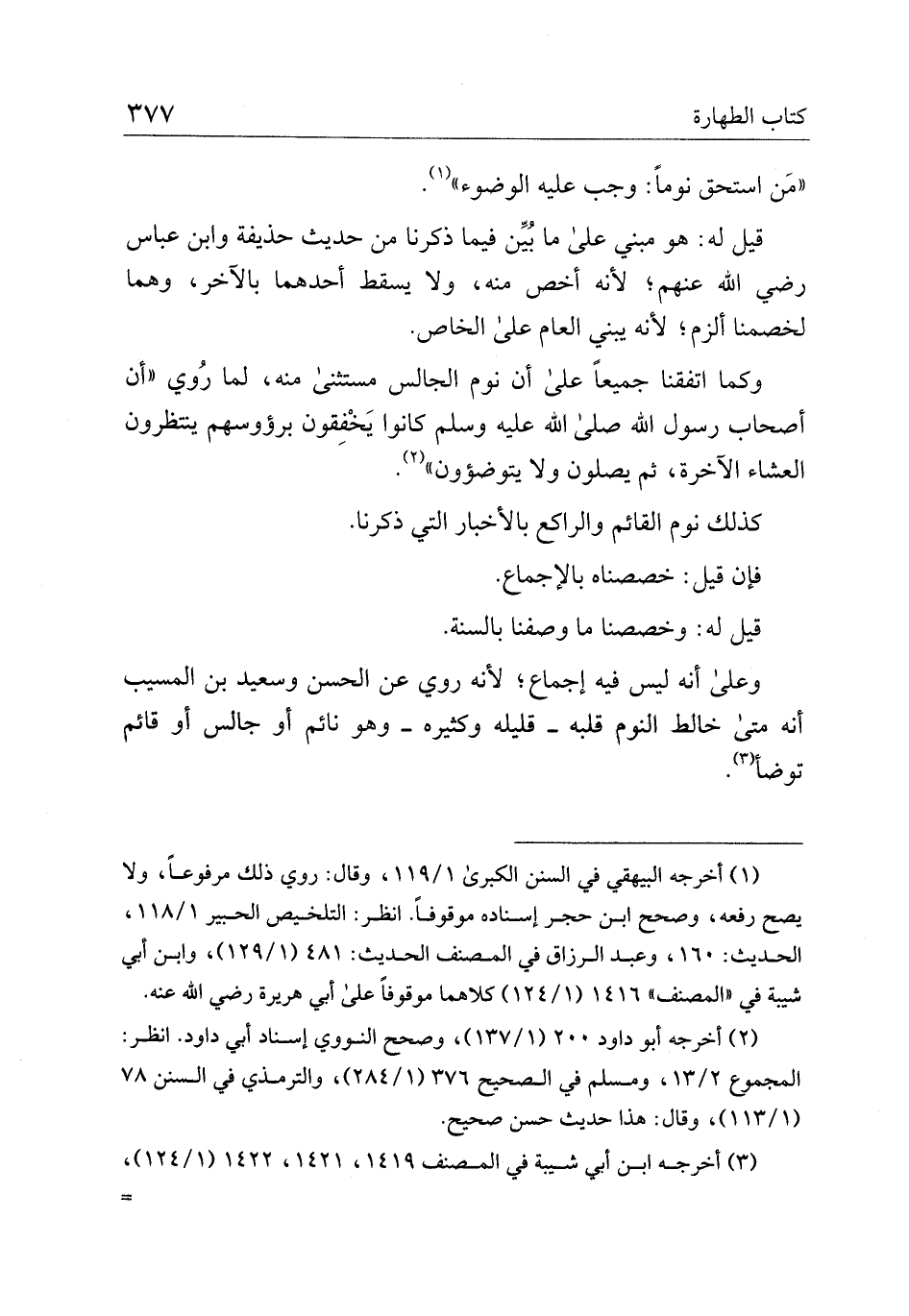 وكما اتفقنا جميعا على أن نوم الجالس مستثنى منه، لما روى "أن أصحاب رسول الله صلى الله عليه وسلم كانوا يخفقون برؤوسهم ينتظرون العشاء الآخرة، ثم يصلون ولا يتوضؤون".