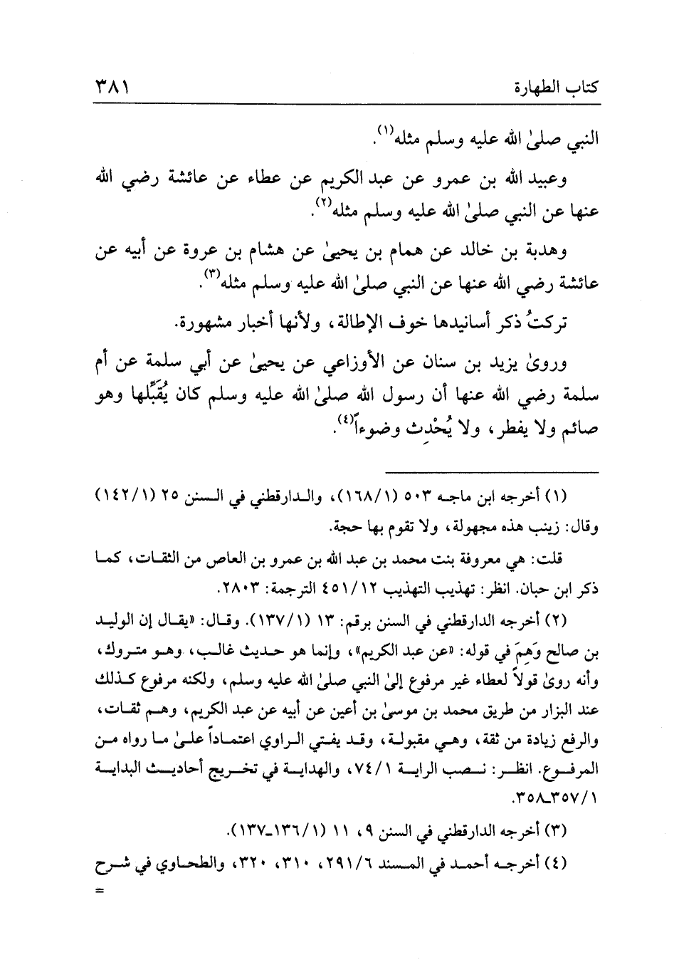 وروى يزيد بن سنان عن الأوزاعي عن يحيى عن أبي سلمة عن أم سلمة رضي الله عنها أن رسول الله صلى الله عليه وسلم كان يقبلها وهو صائم ولا يفطر، ولا يحدث وضوءا.