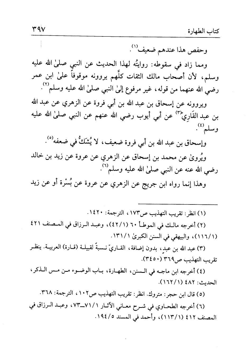 وهذا إنما رواه ابن جريج عن الزهري عن عروة عن بسرة أو عن زيد