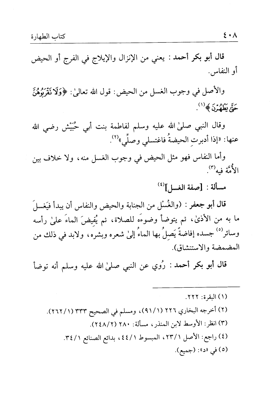 قال أبو يكر أحمد: يعني من الإنزال والإيلاج في الفرج أو الحيض أو النفاس.